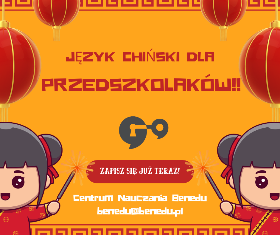 Centrum Nauczania Benedu zaprasza dzieci na zajęcia języka chińskiego! Twoje dziecko uwielbia odkrywać nowe rzeczy? A może chcesz, by rozwijało się językowo w kreatywny i wartościowy sposób? Nasze zajęcia chińskiego to połączenie nauki, zabawy i mnóstwa pozytywnej energii. Dla dzieci oferujemy: zajęcia grupowe – pełne ruchu, gier językowych i kolorowych materiałów zajęcia indywidualne – tempo i program dopasowane do potrzeb i charakteru dziecka Dlaczego warto? nauka przez zabawę przyjazna atmosfera rozwój pamięci, koncentracji i kreatywności pierwsze kroki w jednym z najważniejszych języków świata Napisz do nas i zapisz swoje dziecko na zajęcia!!